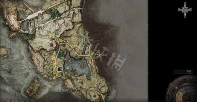 下面图中白圈所处位置就是驿站街遗迹,这里也是商人咖列给出情报的地点,可以找到魔法老师。
