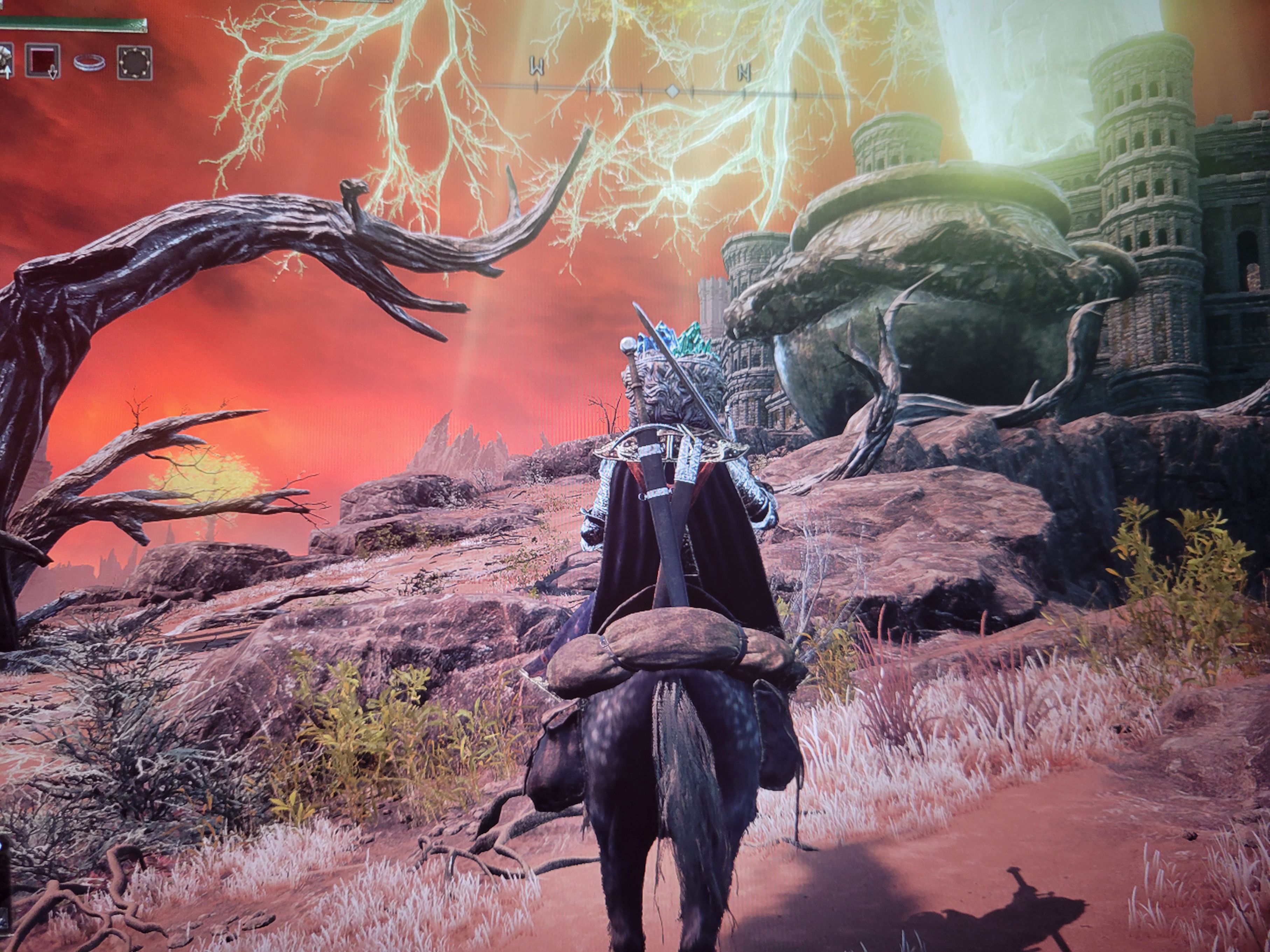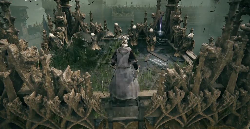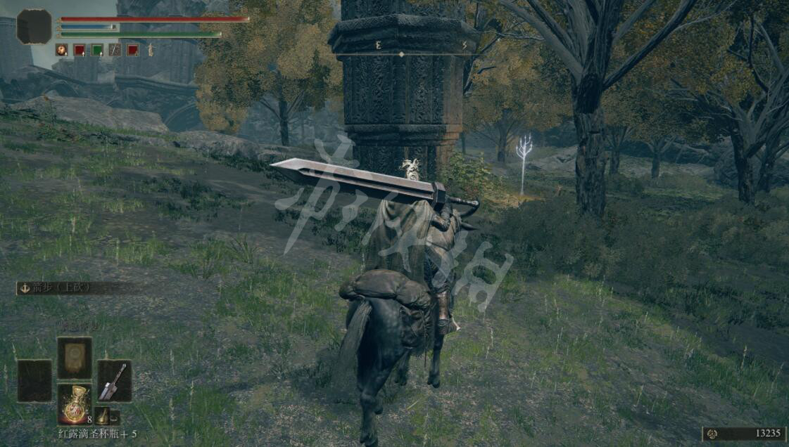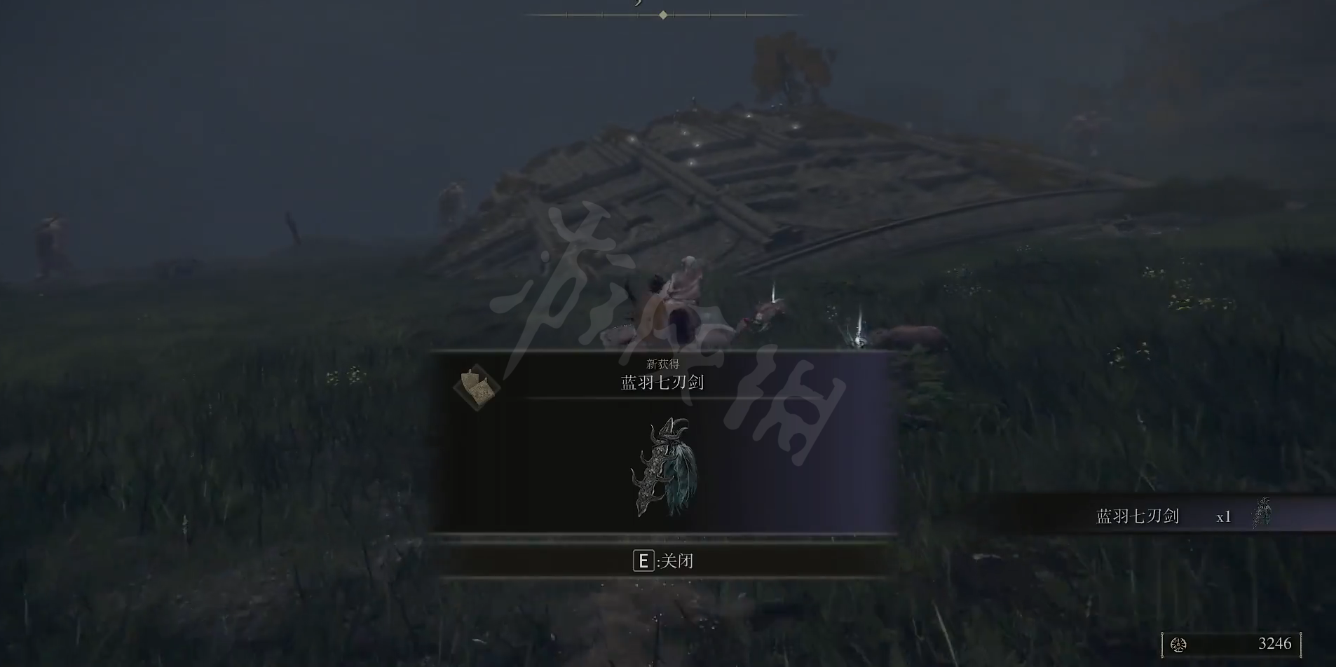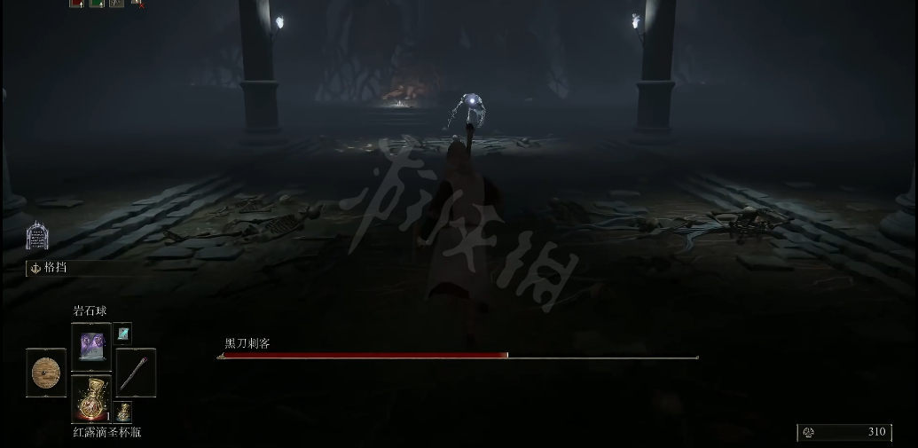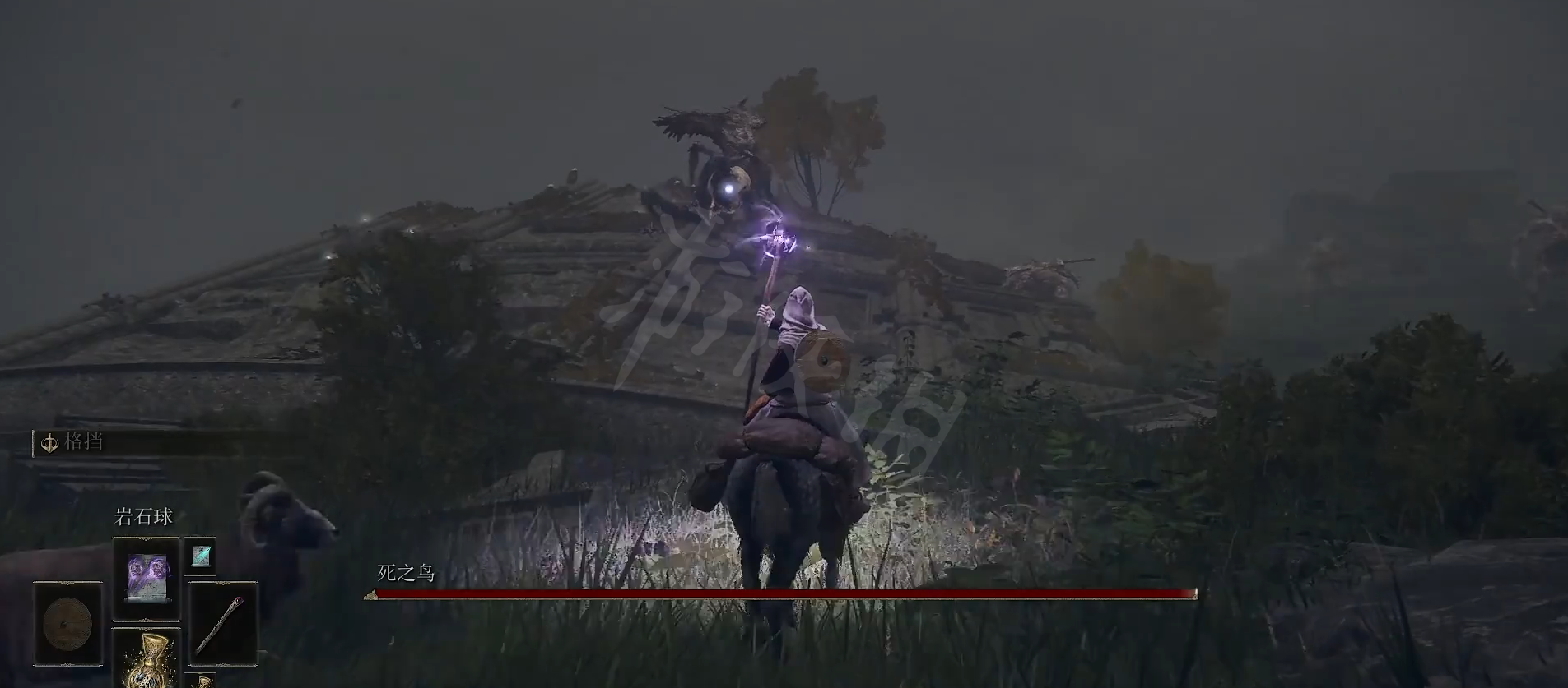 到附近的巨大岩石附近就会遇到我们需要找到的BOSS死之鸟,击败它就会获得蓝羽七刃剑护符。
