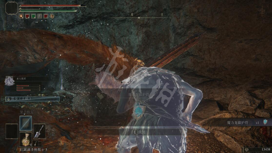 进入洞窟深处后会出现一个BOSS卢恩熊,击败它后获得魔力龙徽护符。