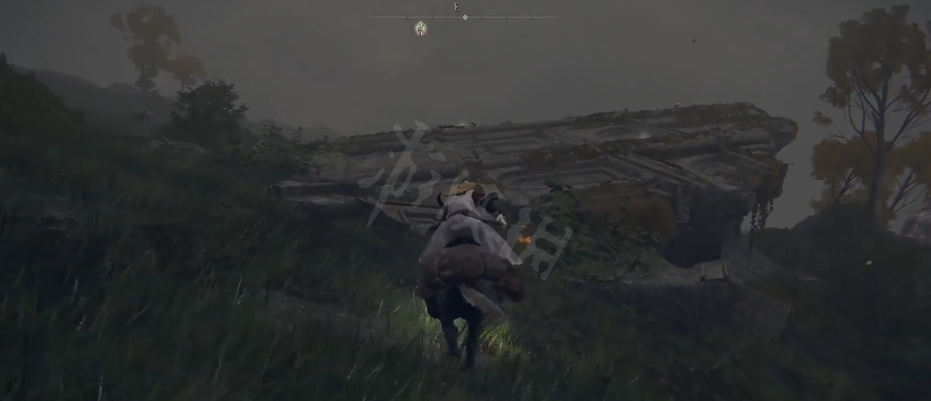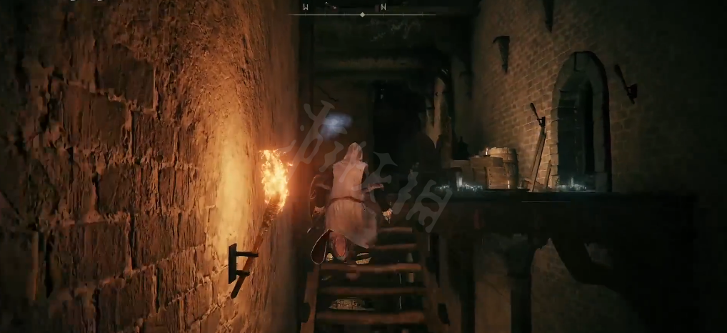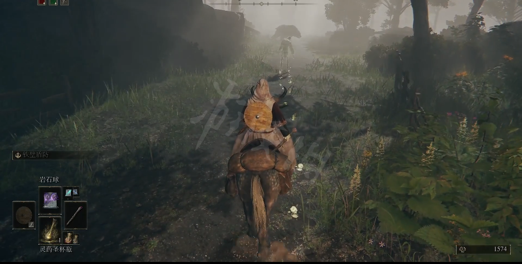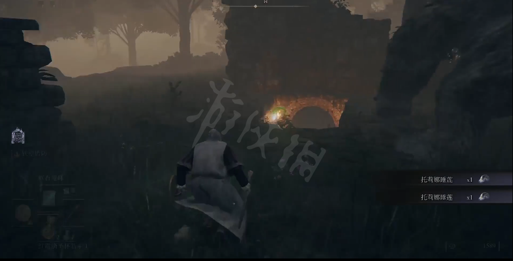 进入雾林废墟,在熊的身后有一个地下室,进入地下室。