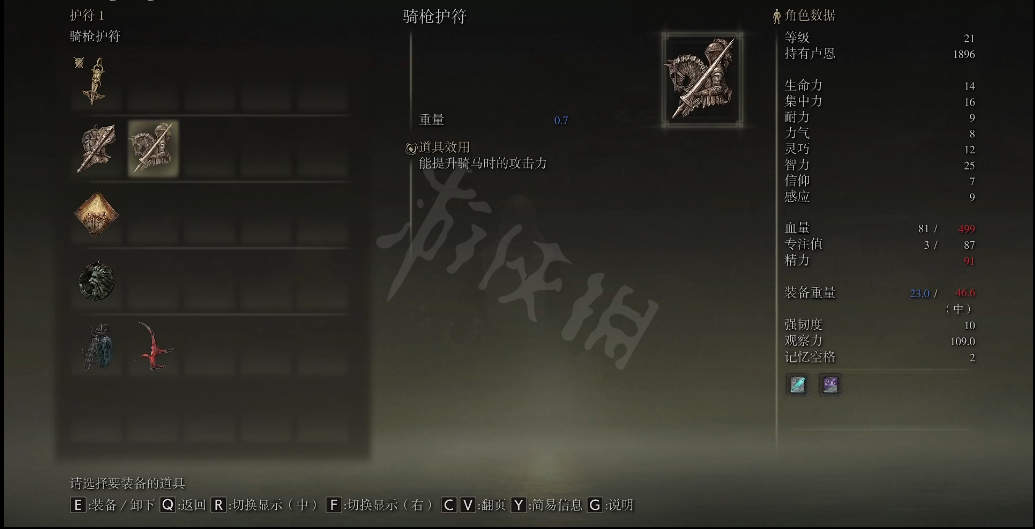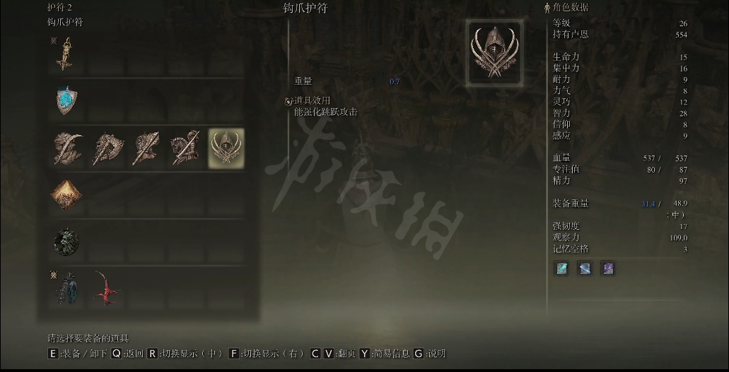 大壶众武护符哈维尔戒指升级版,适合喜欢穿重装的兄弟们的护符,比众武护符加更多的负重。