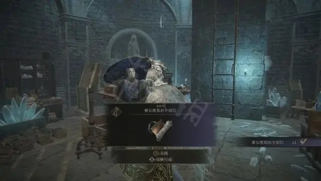 塞尔维斯的位置在菈妮那座塔的左边,多次询问过后这个老头会实在不耐烦的让你去找当初同在学院共事的瑟廉,并交给了你一份信。