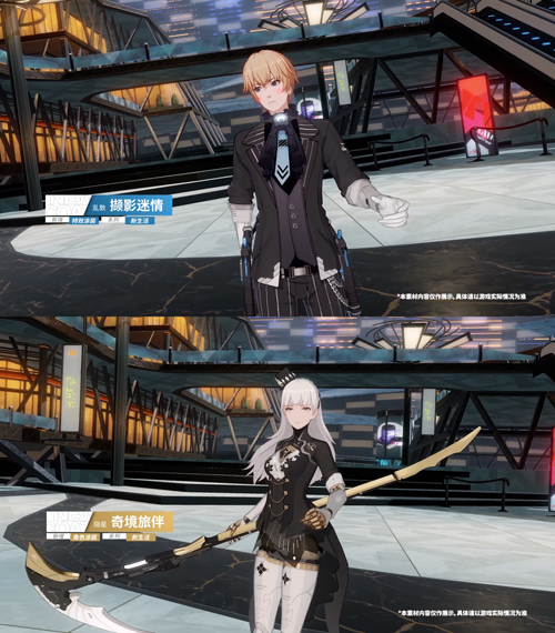 「遥岸方舟」版本更新中,还将迎来两款全新涂装,分别是里·乱数的专属特效涂装【撷影迷情】和哈卡玛的伴生涂装【奇境旅伴】。前者以条纹西服打造了里的执事形象,干练帅气。后者黑色军装裙加上机械设计,飒爽之余保留了一丝甜美气息、
