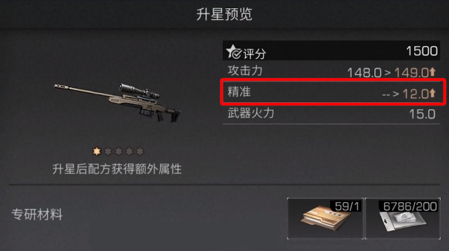 当配方专研到1星时,还可提升12点精准值。因此,交易市场上,狙击枪的最高精准值为32。