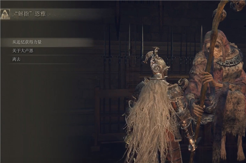 从圆桌厅堂背后的门进入,找到【解指恩雅】婆婆这里,兑换BOSS武器的,如下图所示,选择【从追忆获得力量】这一项。