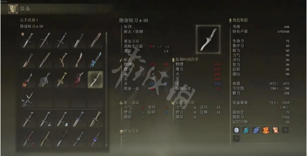 圣属性刀里的最高上位了,强于黄铜短刀很多,面板很不错,信仰战士专用。战技为特殊战技,可以远程划一道剑波,可以安全输出。但是本作远程的太多了,使命短刀并不起眼,短刀更多的情况是连续安全攻击攒异常,而不是打主要输出。使命短刀作为一把面板不错,且最高的圣短刀,还算推荐,但几乎没有上场空间。