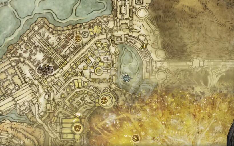 获取方法:首先我们要从禁域乘坐机关到顶层,出门来到王城外围,一路直走,拉起图中的机关。