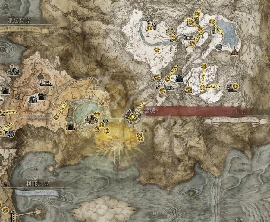 坐着机关向下,来到之前标点的位置,黄金树的恩惠+2就在场内的一个树枝上。
