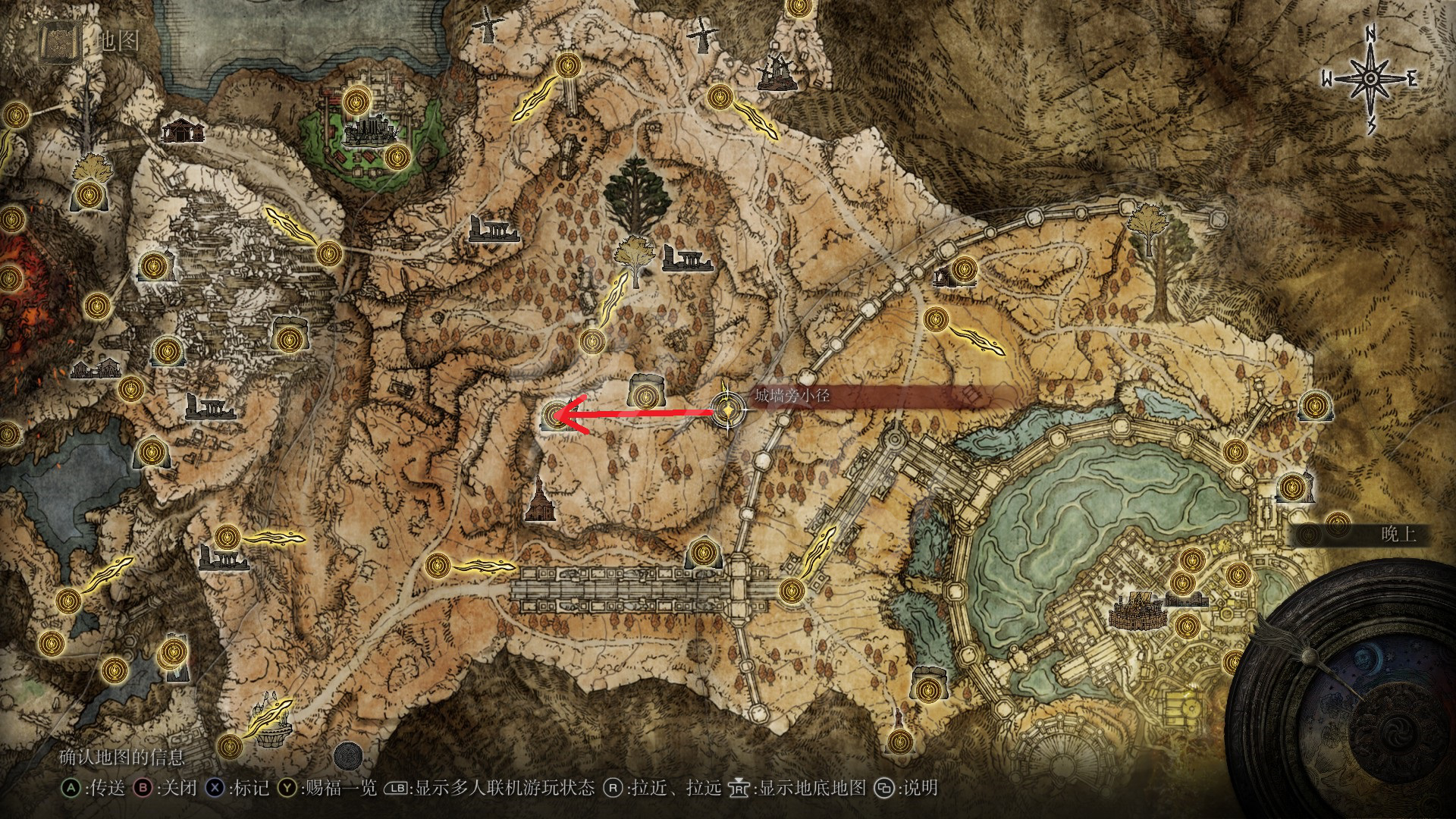 在赐福城墙旁小径的西侧那里直接沿着路走就可以直接找到尊贵者的英雄墓地,位置如下图。