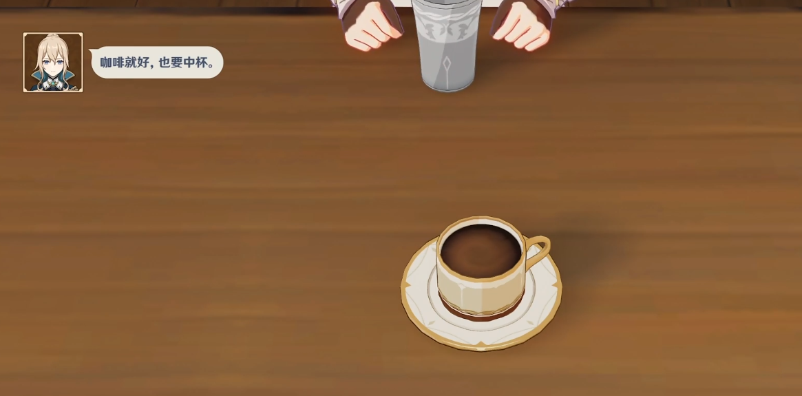 只要加入三份咖啡,然后选择中杯就能得到琴想要的咖啡。