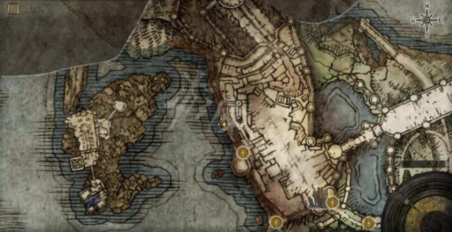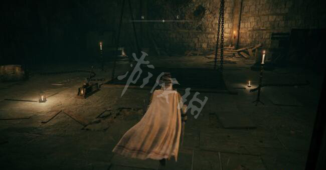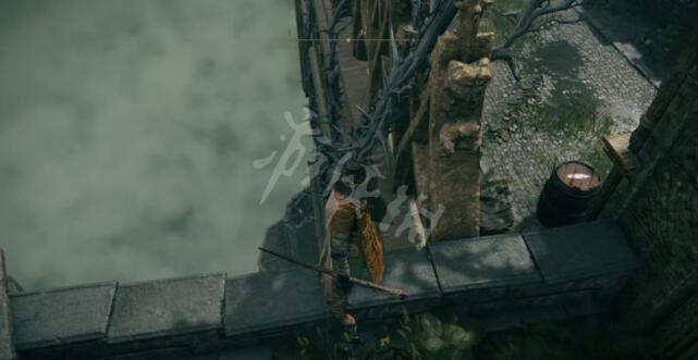 来到史东薇尔成升降机旁后,当前还无法使用电梯,需要从城墙塔赐福点出去,来到城墙边的位置。