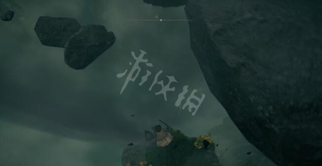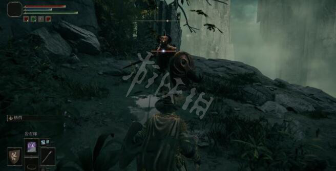 跳到贴墙的石檐上,继续跳到下方发光点位置,可以拾取侵蚀木盾。