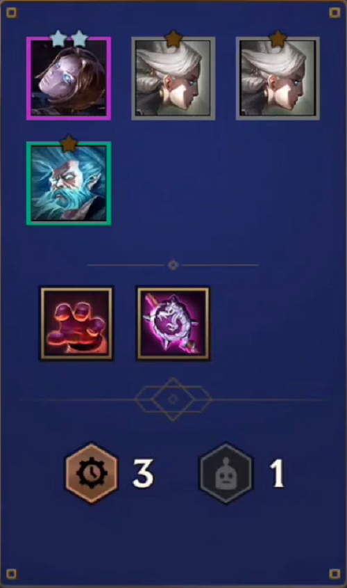 1、开局选择第三套阵容:发条、青钢影、时光老头。