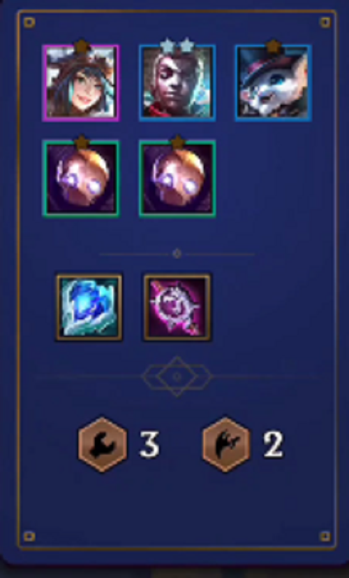 1、阵容我们选择刀妹、艾克、纳尔、两个机器人这套阵容。