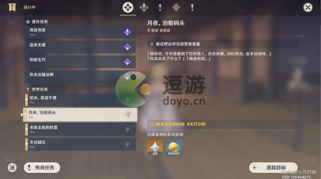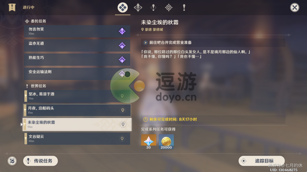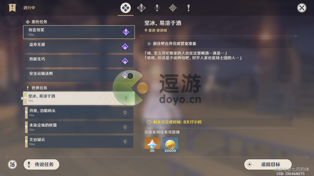 任务流程:前往吧台并完成营业准备;与优菈对话