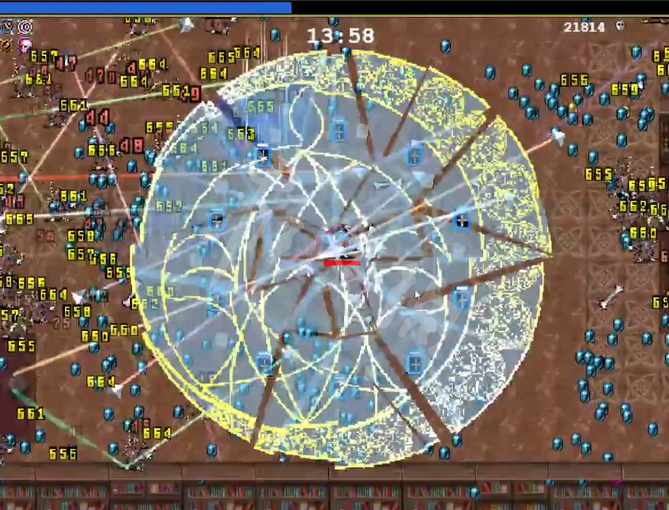 武器技能触发后会在脚下出现魔法阵,然后把怪物变成宝石,并且越来越快。