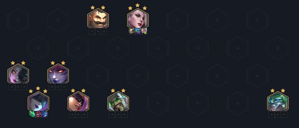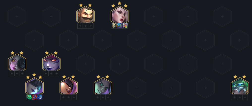 顺利的话5-2拉八,拿狐狸开3辛迪加2黑魔,泽丽来了就把男刀换下去即可,后续就在八人口慢搜阵容整体二星和三星蕾欧娜,选秀给泽丽和德莱文拿装备。
