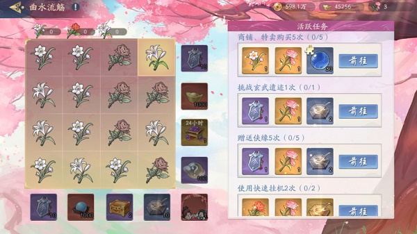 活动期间,少侠可通过完成活跃任务获得游戏道具水仙、百合、玫瑰,并使用道具点亮对应格子。