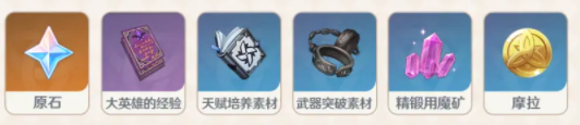 在挑战中获取指定评价分,可获得原石、大英雄的经验、天赋培养素材、武器突破素材、精锻用魔矿、摩拉等奖励。