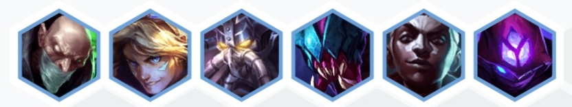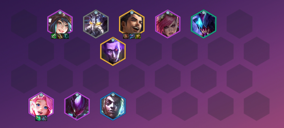 在前期可以组成发明家变异战士的组合,辛吉德、卡萨丁、EZ、挖掘机、艾克和玛尔扎哈,这套组成触发了3发明家和3变异战士羁绊,艾克还和EZ组成了2极客羁绊。