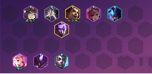 在前期可以组成发明家变异战士的组合,辛吉德、卡萨丁、EZ、挖掘机、艾克和玛尔扎哈,这套组成触发了3发明家和3变异战士羁绊,艾克还和EZ组成了2极客羁绊。