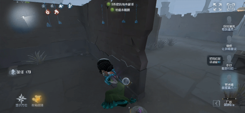 05如果能存活到开门战,在无咒像的情况下不要急于破译大门而是躲在旁边地形,若是此时被追击尽量利用板区进行咒像充能,这可帮助自己增加牵制时长从而有机会出门/跳地窖翻盘。这样一来就算倒地,也能为队友争取开门时间。
