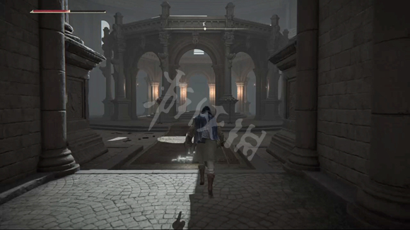 接下来就是BOSS战了,从赐福点往前走几步,通过铁链桥来到BOSS的面前。