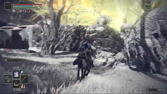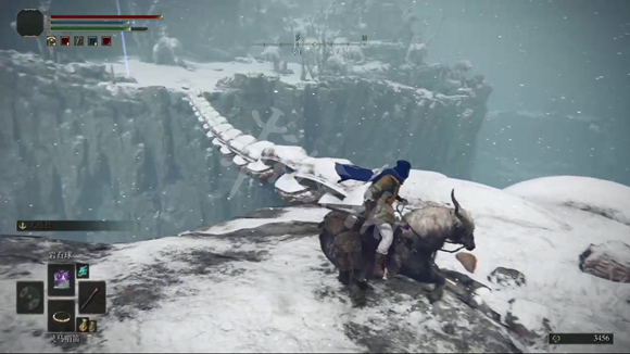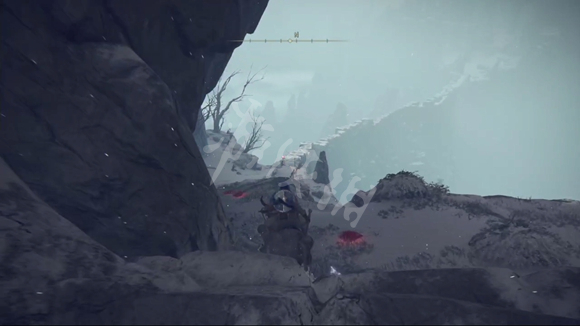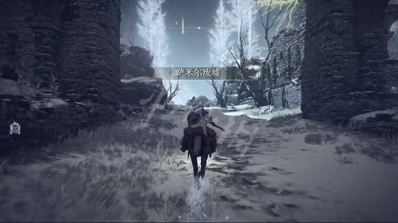 继续前行,经过萨米尔废墟,来到悬崖旁边,根据下图所示,这里会有一处断桥,这里是一个隐藏的道路,根据地标提示慢慢前行。