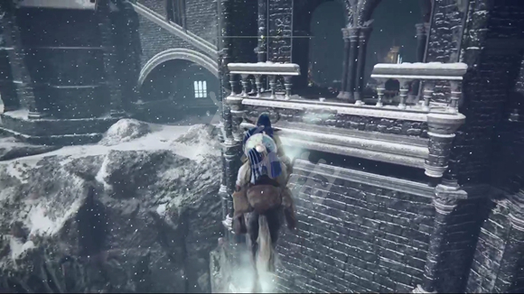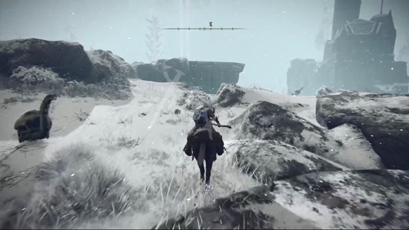 来到落得大升降机,高举符节,通过大升降机来到雪山的另一部门区域,巨人山顶。往前走的路上会解锁地图。