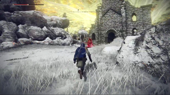 上来后进入一个残破的教堂,这里会触发一个“血脂”老人翁的入侵剧情,尽量采用远程攻击,老人翁主要是近身战,攻击力很强。