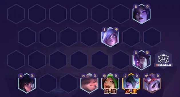 如果是薇恩神射天选的情况,或者是开局三星薇恩没天选,后期再搜的神射天选,也可以转成六射四夜幽变阵,虽然少了六夜幽的加成,多一下弹射伤害对薇恩来说也是成倍的提高。