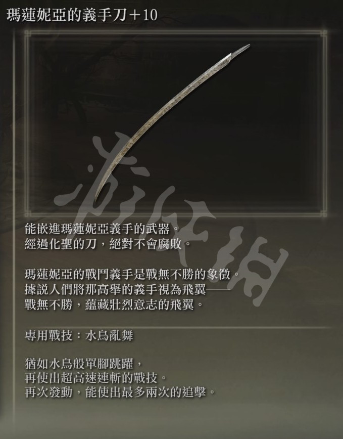 莲妮亚的义手刀是游戏中一个非常特殊的武士刀。