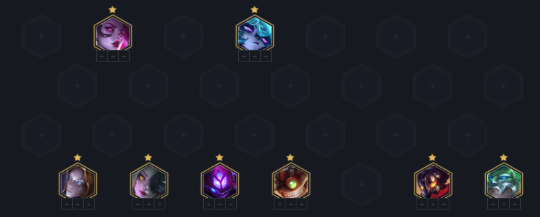 3阶段:3-2升级6人口,阵容方面开始转向4黑魔+2白魔,如果前排坦度较差就不开2白魔继续用极客保镖+3约+4黑魔过渡。通常在4黑前排坦度不差后排蚂蚱有鬼书下基本可稳定连胜。装备在有鬼书后开始考虑蓝霸符或薇古丝的反甲。