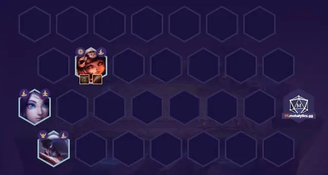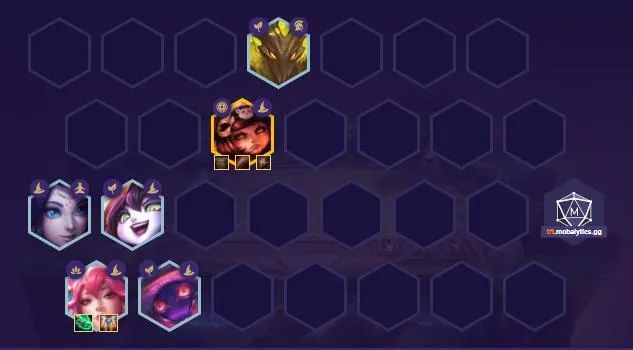 C位选择狐狸,范围技能强力伤害,四费卡中期也有机会刷到。必选装备复活甲,其次青龙刀回蓝,都是为了保证能放出技能,输出很充足,再有余力还可以继续补一件法强装。