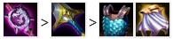 双月神虽然拿得装备多,但是比较抢手的输出装基本没用到,多出的物理装可以养男刀,攻速多还可以做出火炮给阿卡丽,法装所有耀光使都能用,回蓝装优先给伊泽。