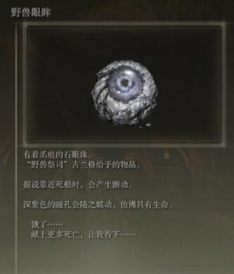 此处可以获得爪痕圣印记和野兽眼眸,圣印记的爪痕代表着古兰格的愤怒,带着爪痕的石眼珠则会在靠近死根的时候产生颤动。