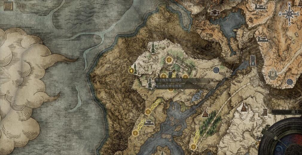 接着通过卡利亚城寨,来到菈妮魔法师塔,跟菈妮和军师等人对话完成后解锁赛尔维斯魔法师塔。