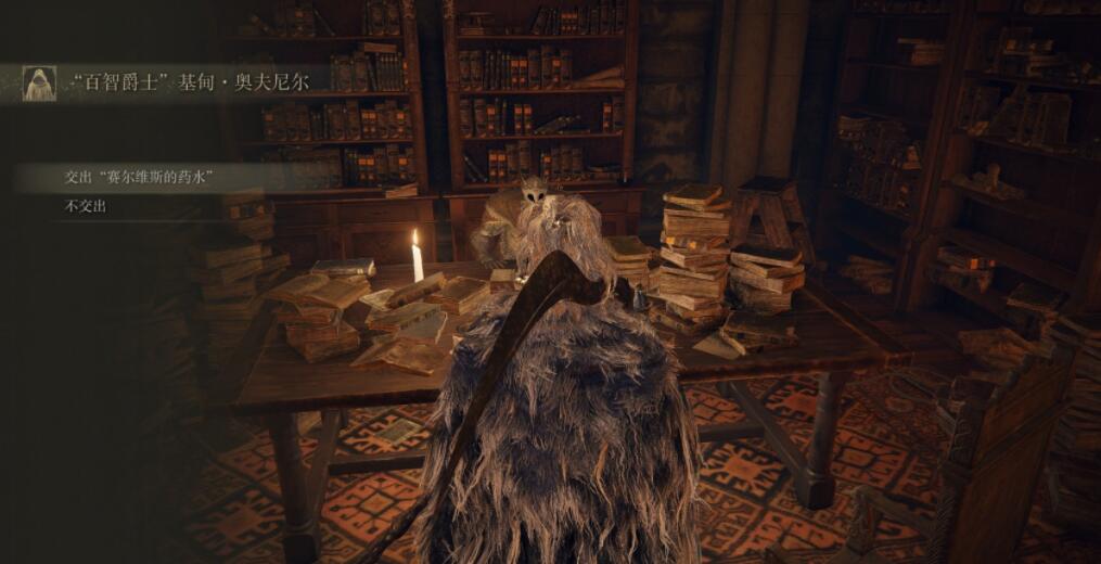 拿到药水后回到圆桌厅堂,将药水交给义父并完成对话。