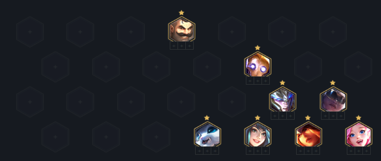 3阶段 :3-2升级6人口。看自身阵容强度,如果质量较差可小D卡提升阵容强度,稳血后在攒钱准备升级人口。阵容方面如果极客发明保镖过渡添加纳尔或赛娜就好,也可考虑4保镖+打工仔过渡,4保镖在3与4阶段强度较高稳血能力超强,如果这时候斗士比较胡也可4斗过渡。