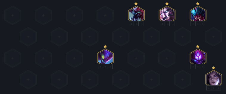 7人口搜卡的话就是5-1左右上8人口,7人口没搜卡就4-5左右上8人口,8人口就嘎嘎搜就完事了,先找2巨像+5变异,卡莎和加里奥来得早也很舒服,凑齐5变异+2巨像后慢慢找虫子和蚂蚱三星即可。