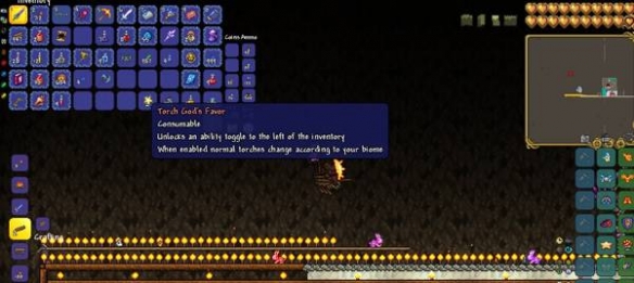 3、过于丢按时间火把会重新点燃,并且可以掉落火把神徽章,火把神徽章可以让玩家手中和放置的普通火把变为当前生物群落对应的火把。