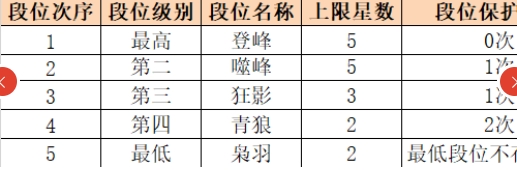 段位星数扣除到低于0时,且有段位保护次数时,段位不会降低,段位星数清零;