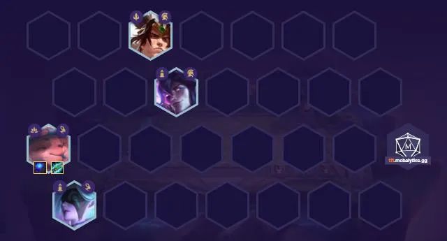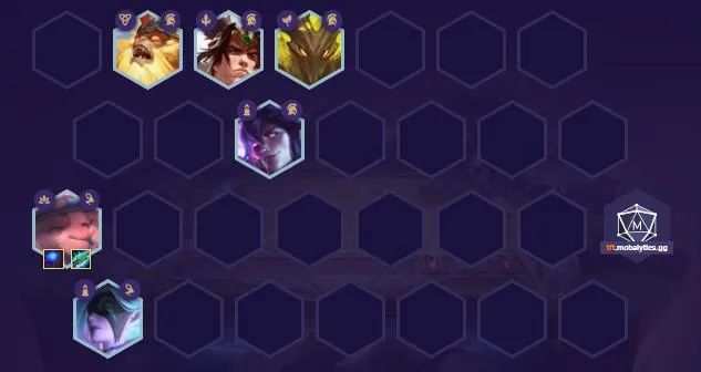 2-4升五不压等级,再没有强力天选也可以拿前排天选打工,天选重装或天选斗士斗士都能用,组前排加后排提莫、薇恩双神射。