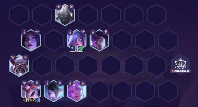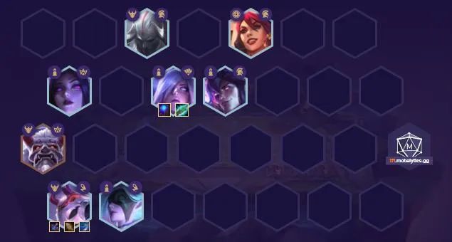 夜幽瑞文阵容是以夜幽为主羁绊,以瑞文为主C、烬为副C的一套阵容,主装备蓝霸服,二十点超短蓝条加上蓝霸服非常好用,再辅以科技枪,增加技能释放频率的同时增加容错,烬三件套后的高额伤害也弥补了一些伤害缺失。