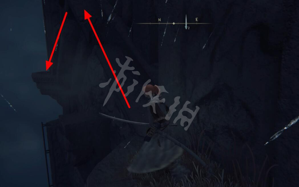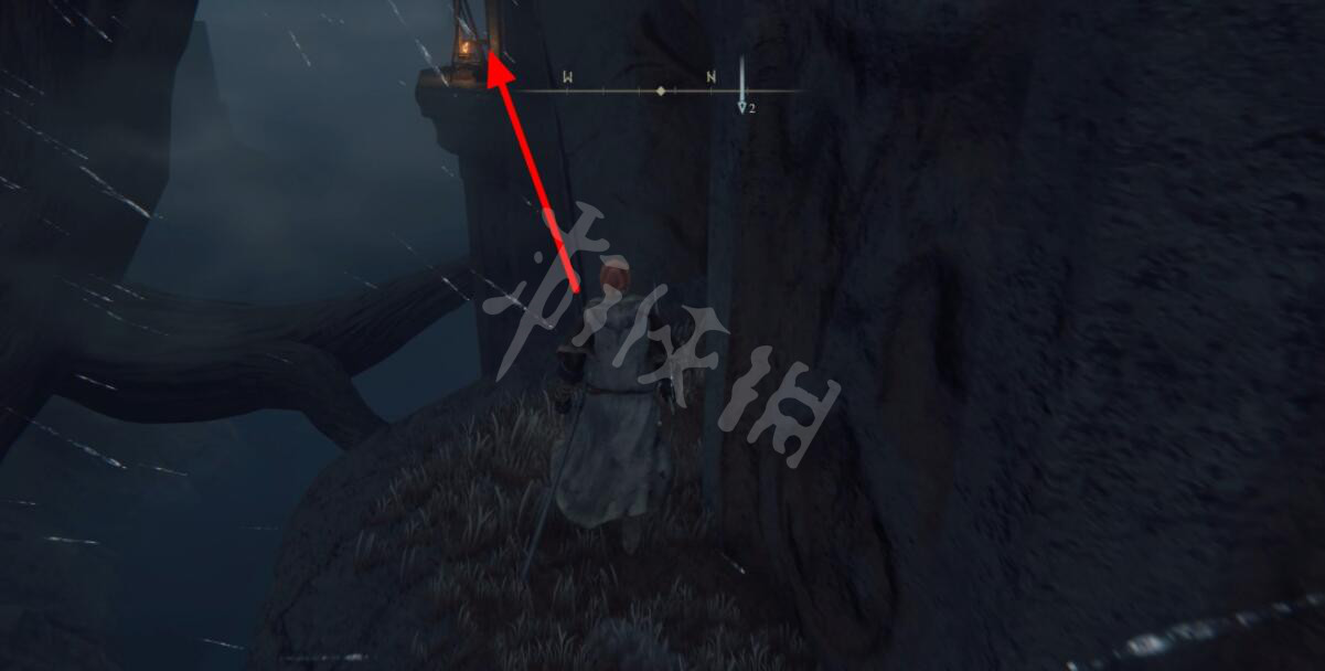 来到盖利德神授塔底部后,通过旁边的树干到达神授塔边缘,随后沿下图所示线路向上。