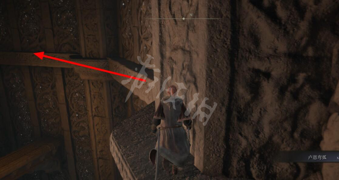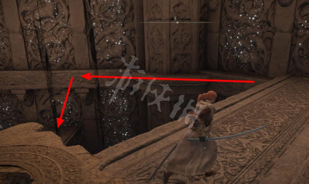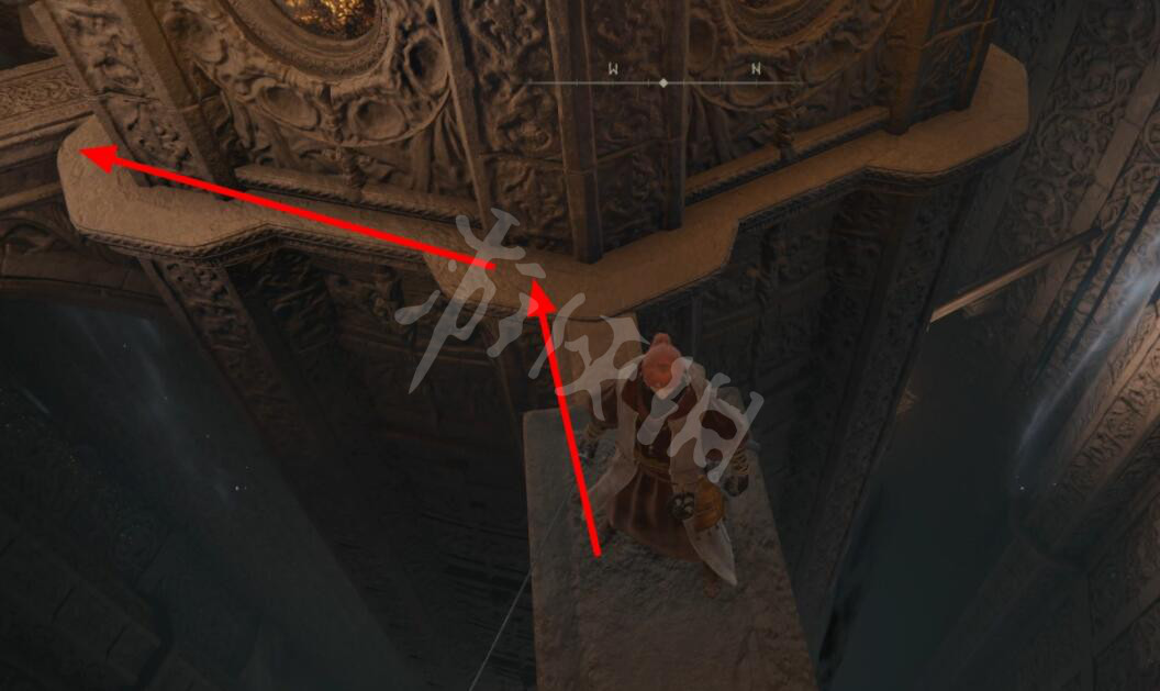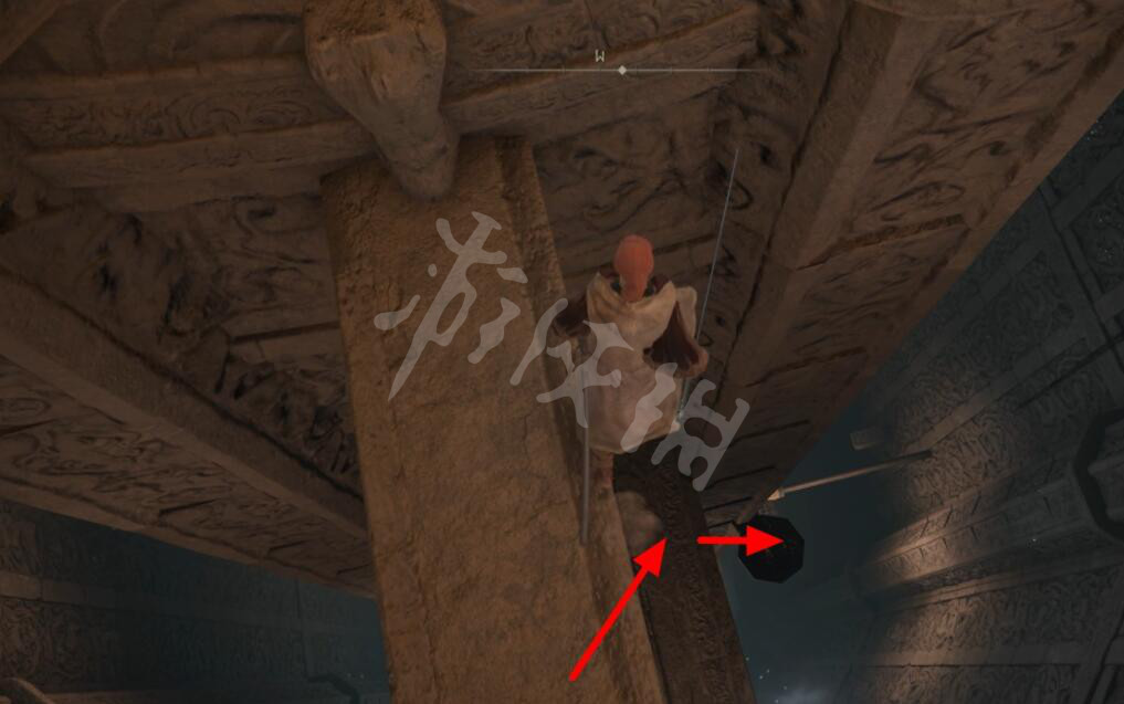 到达前方的石梁后左转跳至下层。