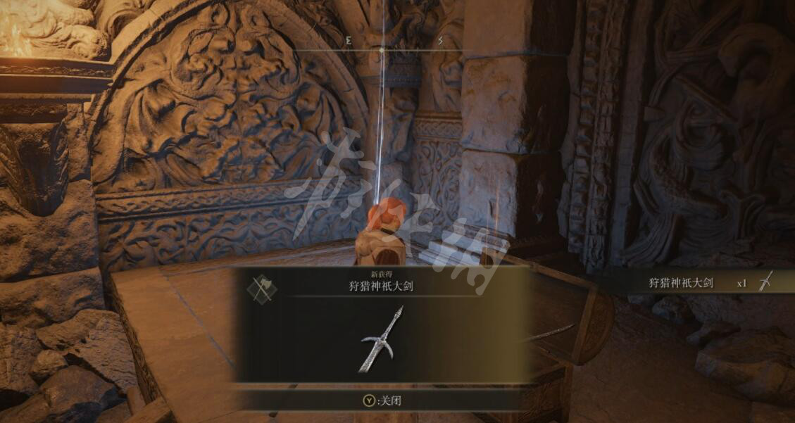 消灭神皮使徒后打开前方房间的宝箱即可获得狩猎神祇大剑。