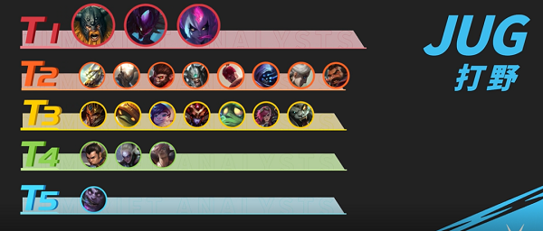目光转向野区,作为ad和ap刺客的顶流,卡兹克和伊芙琳依旧牢牢坐在T1的宝座上。而之前一直在T2、T3徘徊的奥拉夫,则因为神圣分离者的加入与死亡之舞的装备改动,大大加强了自身的坦度与持续输出能力,再配合自身免疫控制的技能效果,能够对敌方c位造成极大威胁,因此强势冲上了榜首。