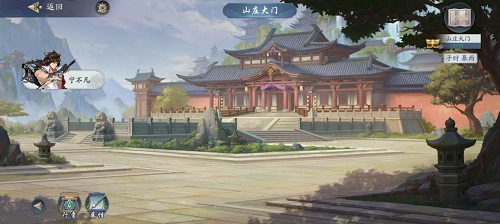 第二步 进入山庄大门-山庄广场 ,点击管家接取任务(聊天),开启庄主阁,山庄正殿。
