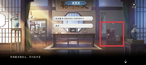 第六步 前往藏书阁,点击图书阁的人(聊天),阅读藏书:增加经验。 等级足够可以打开相应的物品。